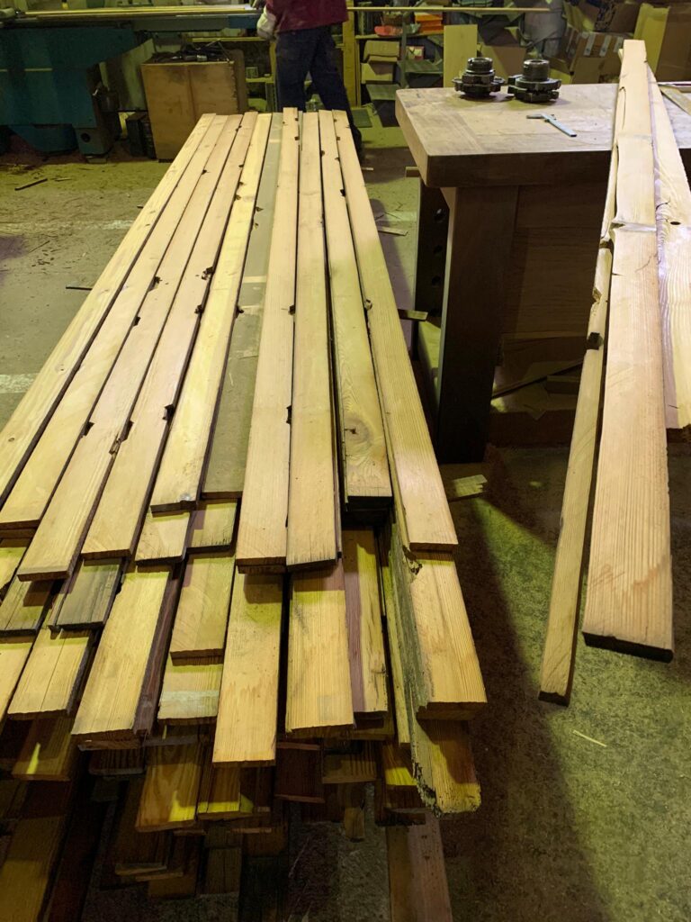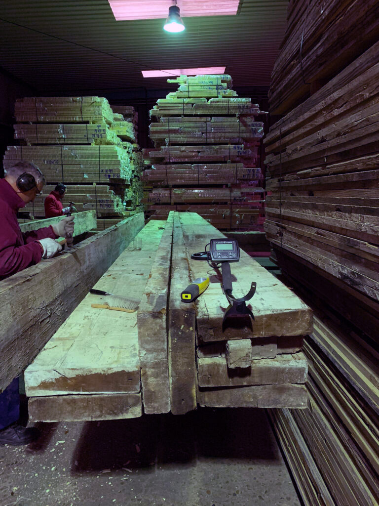 Una vez aquí las vigas, las tratamos, primero quitando con un detector de metales los clavos. El proceso es todo manual, a base de formón y paciencia. Posteriormente, se sierra a tabla de pulgada para pasarla por secadero y luego se realiza una selección de anchos y calidades. Ya os adelanto, que no todas las vigas van a ser serradas, pues voy a reservar bastantes para la realización de mesas de 7 metros de largo por si algún caprichoso se antoja de ellas… ¡Ahí lo dejo!