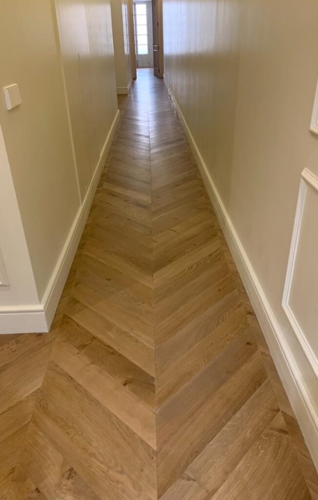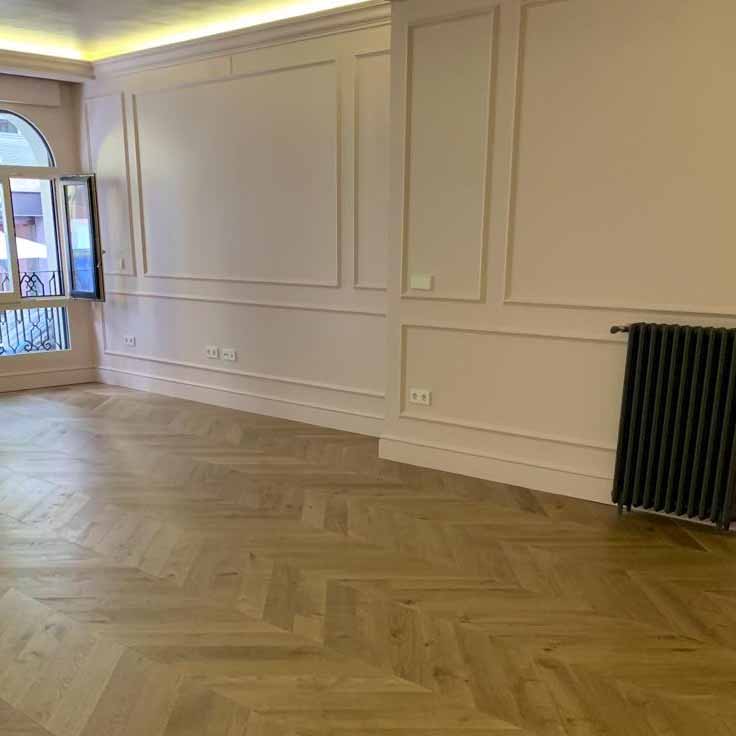 Y por último valorar también el tamaño de la tarima para Punta Hungría. En tarima maciza nos adaptamos a los anchos y largos que se quiera, pudiendo cuadrar diferentes largos en el pasillo (que suele ser más estrecho), y en los salones y comedores, pudiendo lucir una espiga mucho más larga para estos espacios tan amplios. Con la tarima flotante, siempre será el mismo tamaño en toda la casa, con el consiguiente desperdicio de material en ciertas zonas y quedando empieces y finales ridículos en otras.